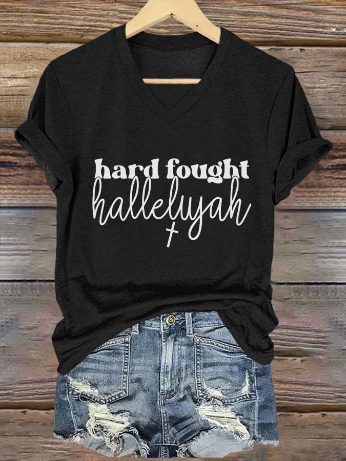 Women's Casual Christian Faith Graphic Print V-Neck Short Sleeve T-Shirt